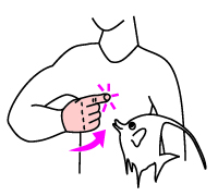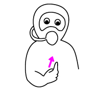 1. Wijs naar je zelf door je hele hand met je wijsvinger uitgestoken tegen je borst te leggen: