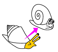 Een mannelijke slak kijkt zijn ogen uit naar de vrouwelijke slak.