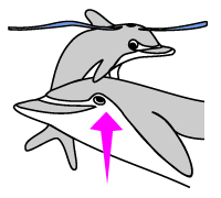 &! Een moederdolfijn helpt haar baby naar de oppervlakte om te ademen na de geboorte.