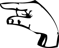 H Steek de 2e en 3e vinger uit. Houd de 4e en 5e vinger vast met je duim.