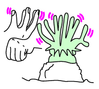 Een anemoon op een steen wiebelt met zijn tentakels.