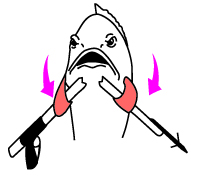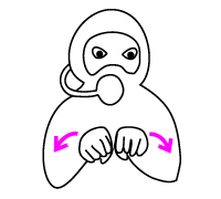 1. Doe alsof je een pijl vasthoudt door beide handen in een S te houden, met je palmen naar beneden. 2. Draai je handen snel in tegenovergestelde richting.
