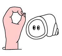 1. Maak een rondje met je vingers, door je vingers naar je duim te brengen. 2. Richt het rondje op de lezer.
